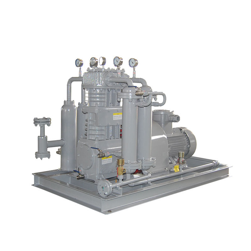 乙烯壓縮機(jī)壓縮機(jī)是我公司新型產(chǎn)品,它集壓縮機(jī)、氣液分離器、安全閥冷卻器、電動(dòng)機(jī)等為一體,成一完整的機(jī)組。具有功能多、體積小、重量輕、功率小、運(yùn)行平穩(wěn)可靠等特點(diǎn),并有良好的安全性能。它為輸送氫氣,可為用戶最大限度地創(chuàng)造經(jīng)濟(jì)效益。由于采用獨(dú)特的無(wú)油潤(rùn)滑設(shè)計(jì),氣缸內(nèi)無(wú)需用油潤(rùn)滑,因而不會(huì)對(duì)介質(zhì)造成污染,使被輸送物質(zhì)保持純凈。本機(jī)設(shè)計(jì)成機(jī)組型式,許多管線上的附件都安裝在機(jī)組上,省卻了氣液分離器、穩(wěn)壓罐、安全閥、進(jìn)氣過(guò)濾器等,減小了機(jī)房的面積,減少了操作維護(hù)工作量,節(jié)省了投資。